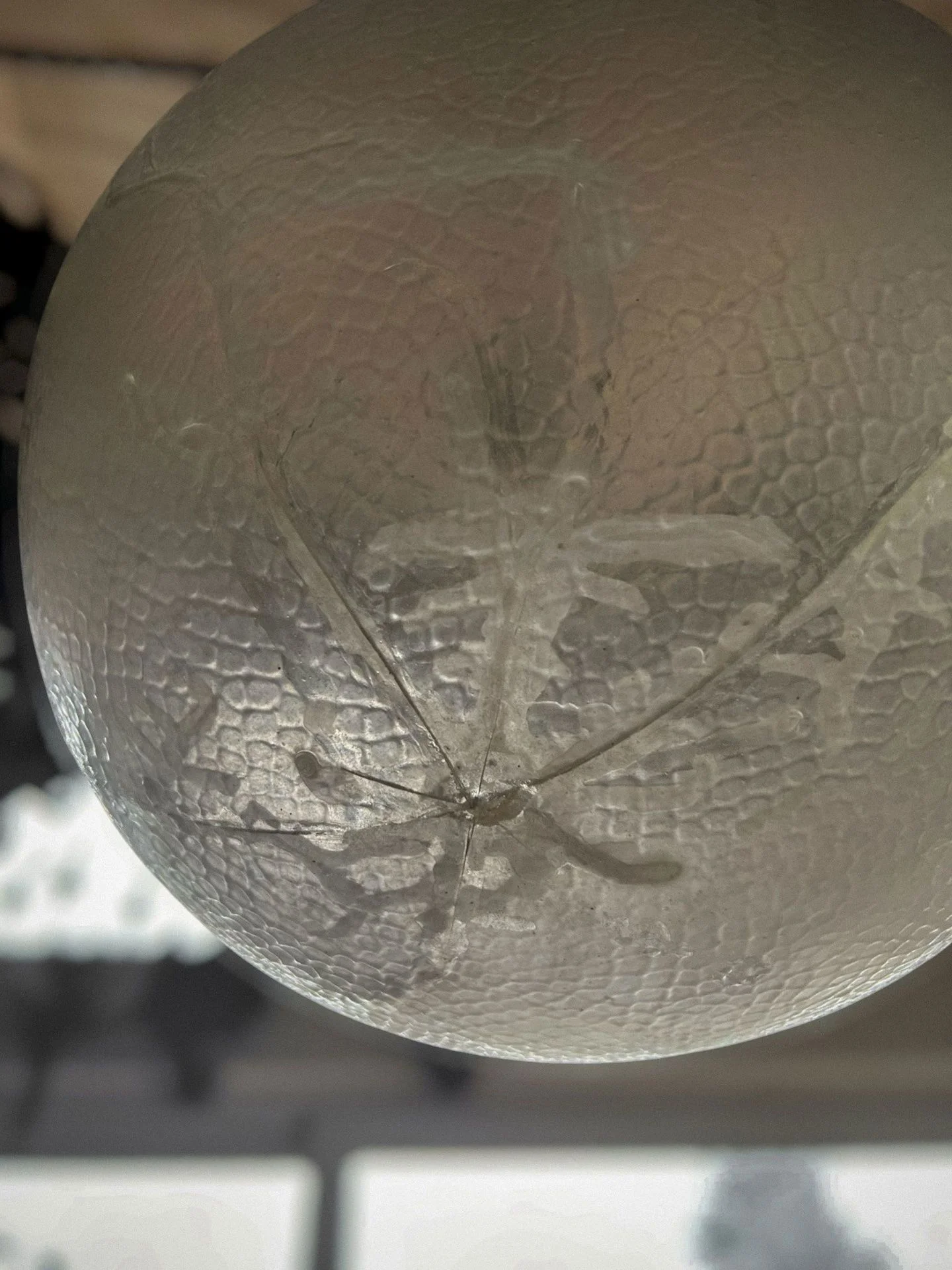 Il lampadario presenta naturali segni del tempo coerenti con l’età, che ne attestano l’autenticità; si segnala inoltre che la coppetta di vetro centrale risulta danneggiata. Nel corso del tempo è stato oggetto di restauro, intervento che ne ha preservato la struttura e la stabilità mantenendone inalterato il carattere originale.