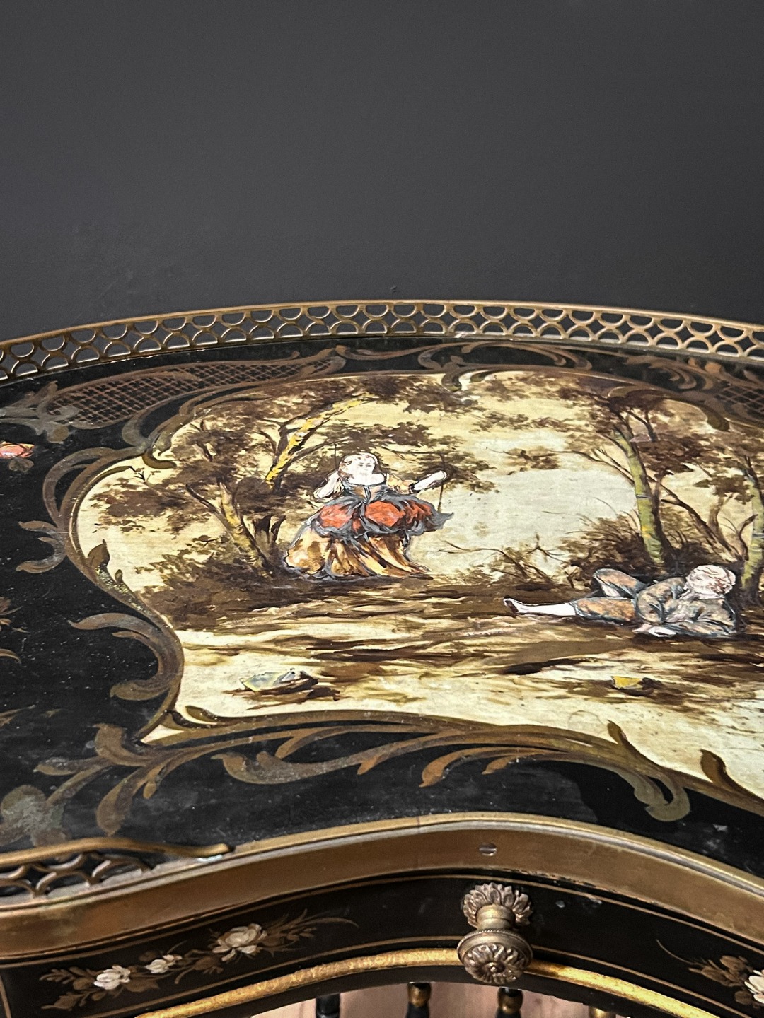 Il mobile è interamente laccato e dipinto a mano con motivi floreali, tipici dell’arte in stile Luigi XV.
