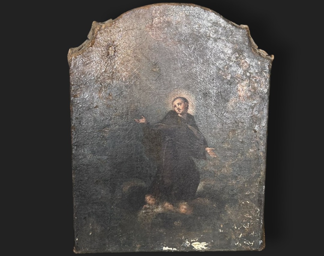 Antico dipinto realizzato dall’artista Michelangelo Cerruti (1666–1748), eseguito con tecnica ad olio su tela, raffigurante San Pasquale Baylon nell’atto di adorare l’Eucarestia.