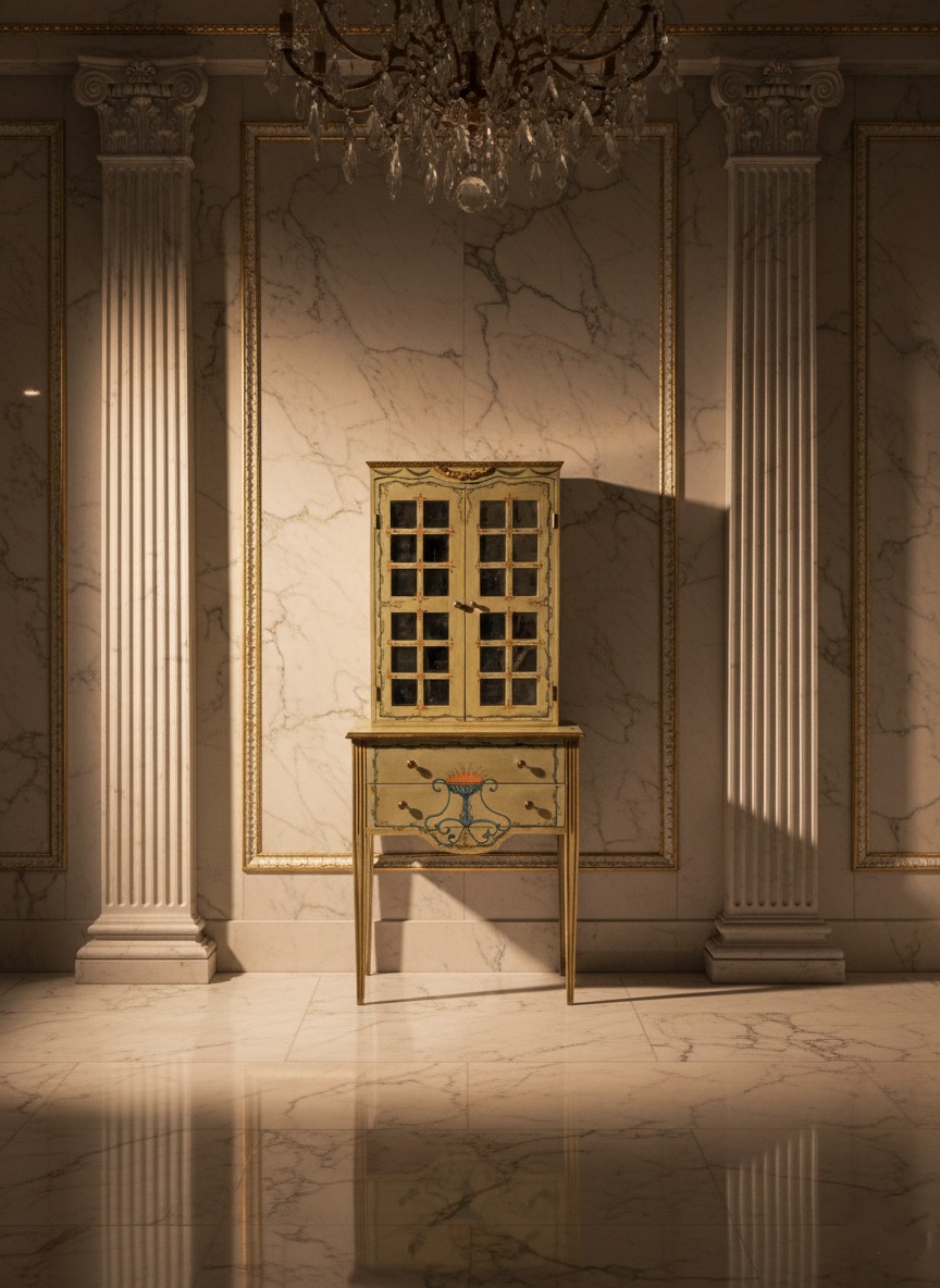 Nel complesso si tratta di un arredo decorativo di grande fascino, ideale come vetrinetta, secrétaire o mobile da ingresso, perfetto per ambienti classici, shabby chic o eclettici.