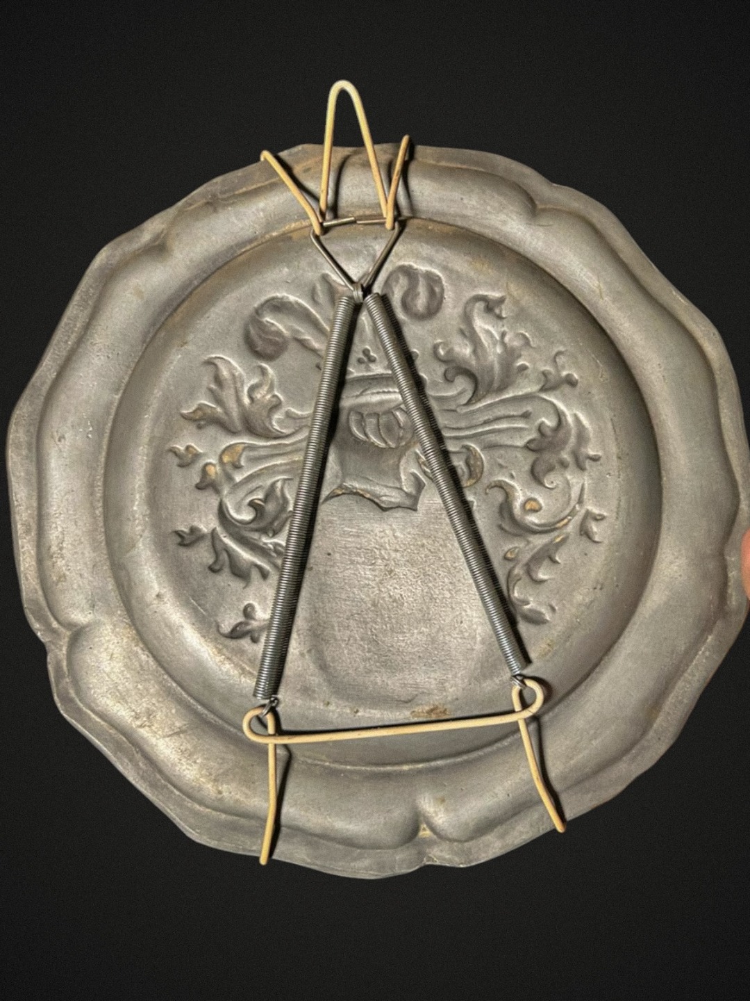 Piatto Araldico Antico in Peltro con Stemma Tedesco