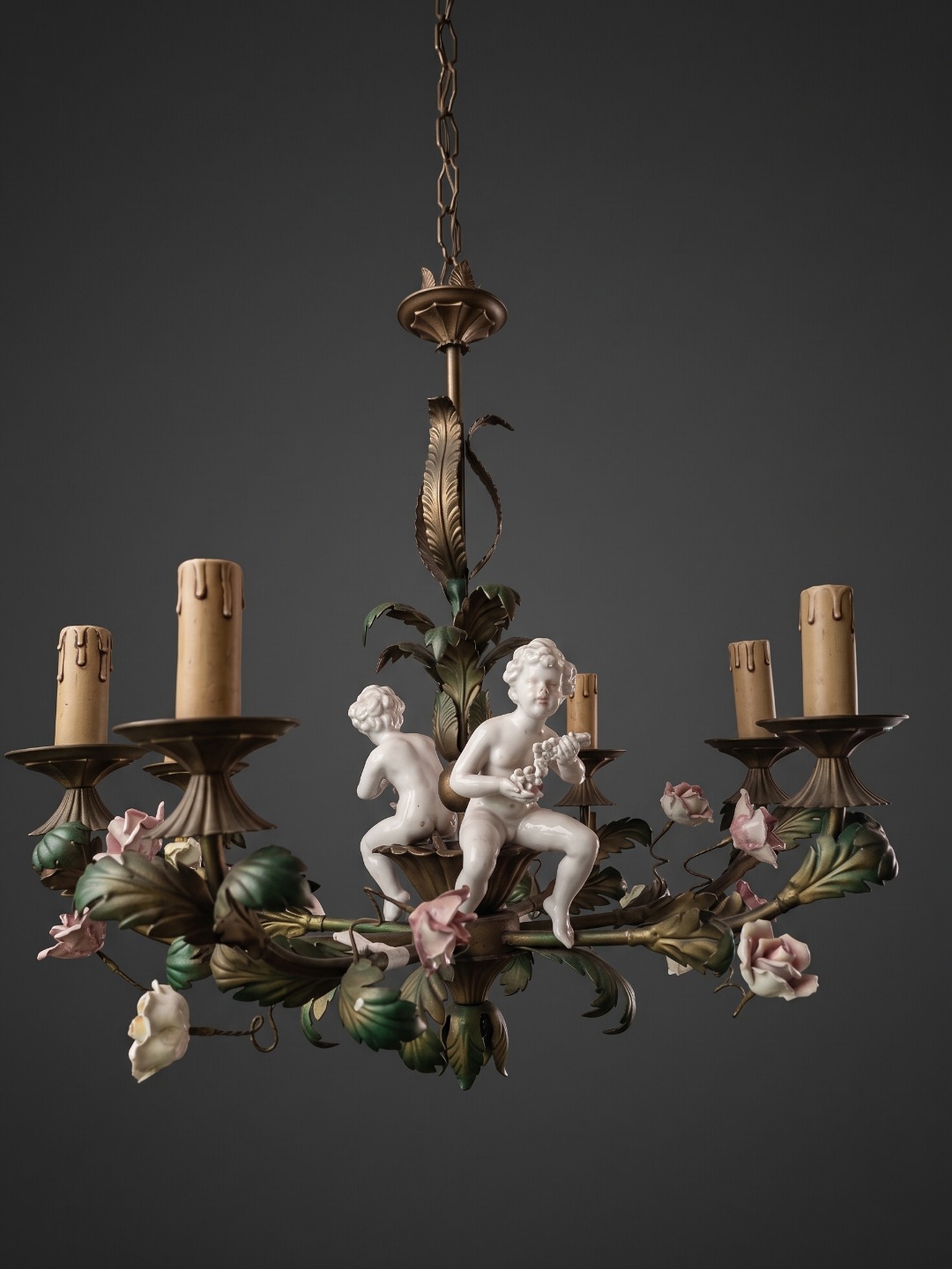 Il suo design raffinato unisce la robustezza del ferro forgiato con la delicatezza e la ricercatezza delle decorazioni in porcellana di Capodimonte, creando un’illuminazione suggestiva e di grande impatto visivo.