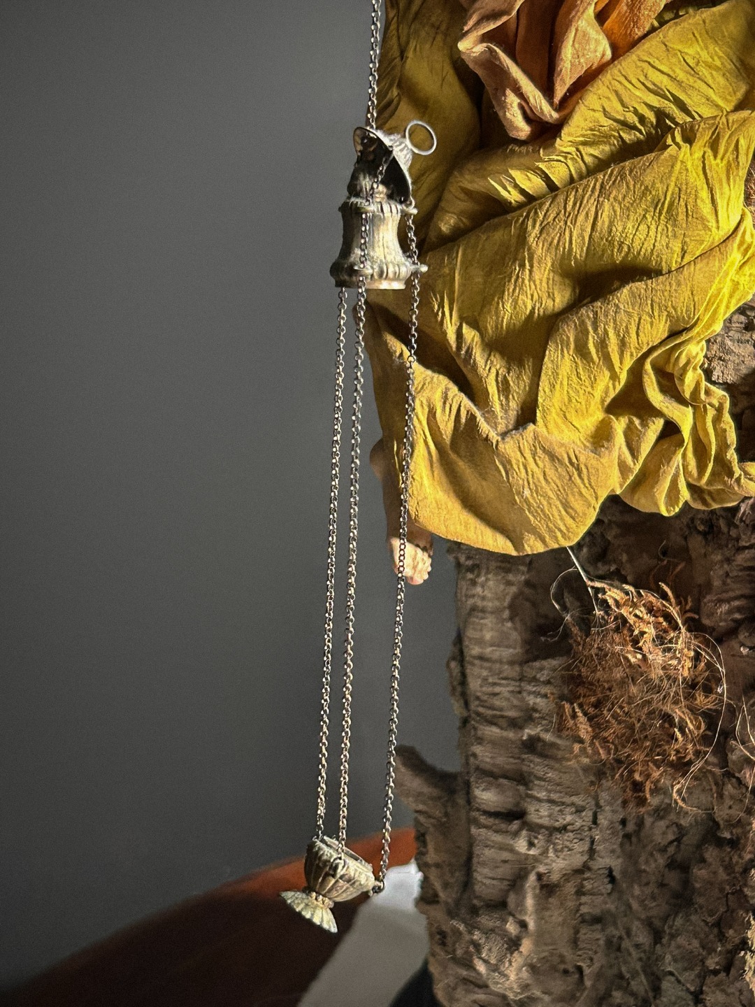 Materiali: Terracotta dipinta a mano, occhi in vetro, abiti in stoffa e materiali naturali, struttura in sughero e legno