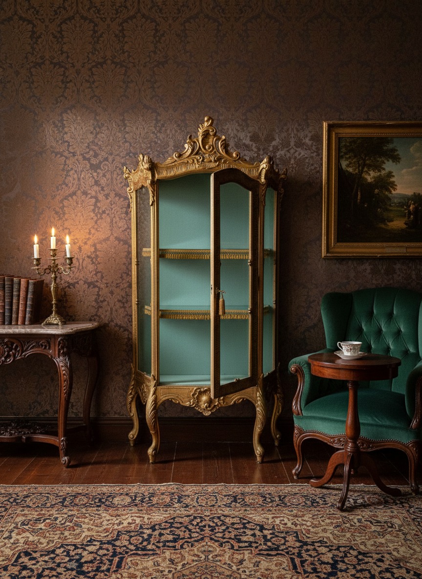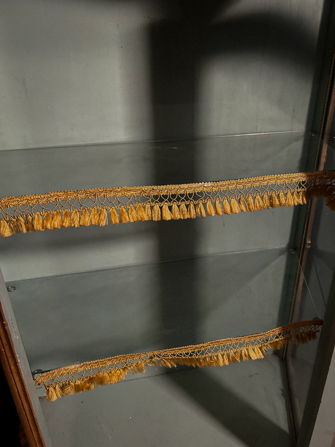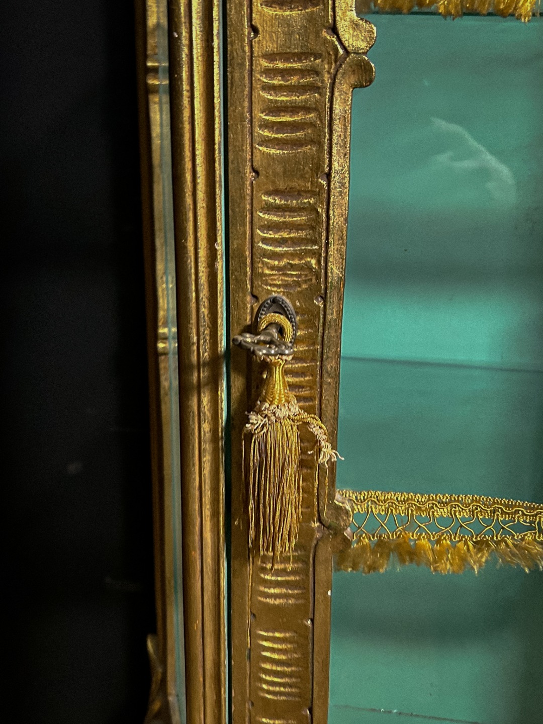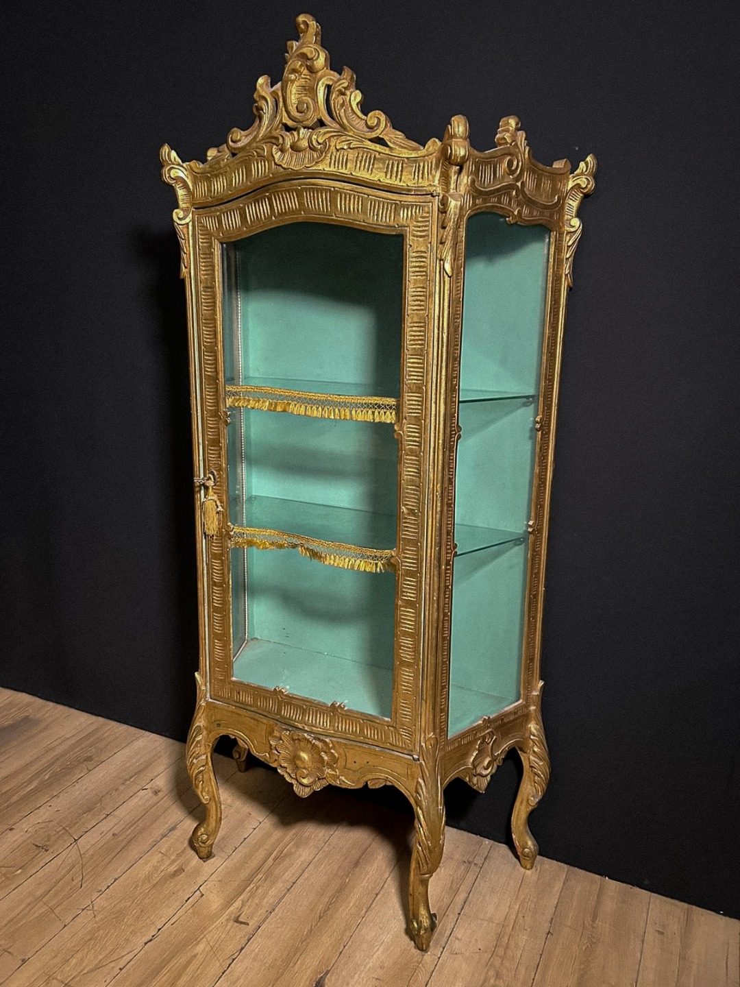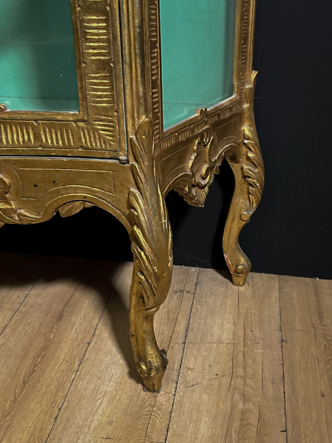 Antica Vetrina in stile Luigi XV, risalente alla prima metà del 1900. Questa elegante vetrina è interamente realizzata in legno finemente intagliato a mano, dimostrando l’abilità artigianale e l’attenzione ai dettagli tipici del design francese. Con una struttura robusta e decorativa, la vetrina misura 188 cm di altezza, 95 cm di larghezza e 43 cm di profondità, offrendo ampio spazio per esporre stoviglie, libri o oggetti collezionabili.