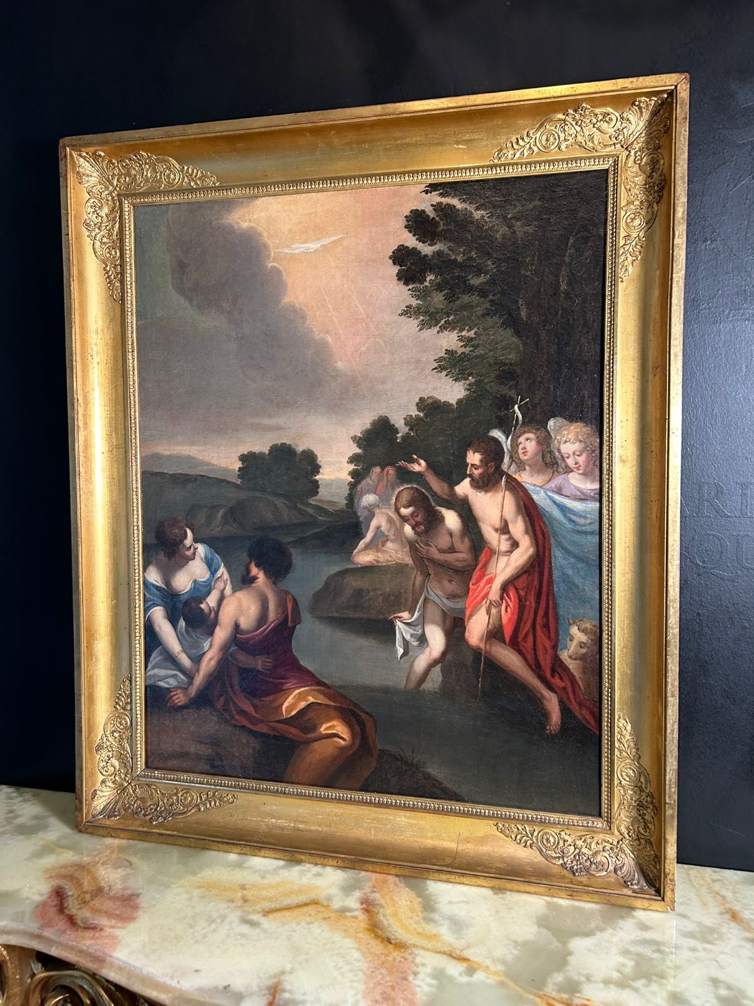 Antico Dipinto “Il Battesimo di Cristo” Scuola Napoletana.