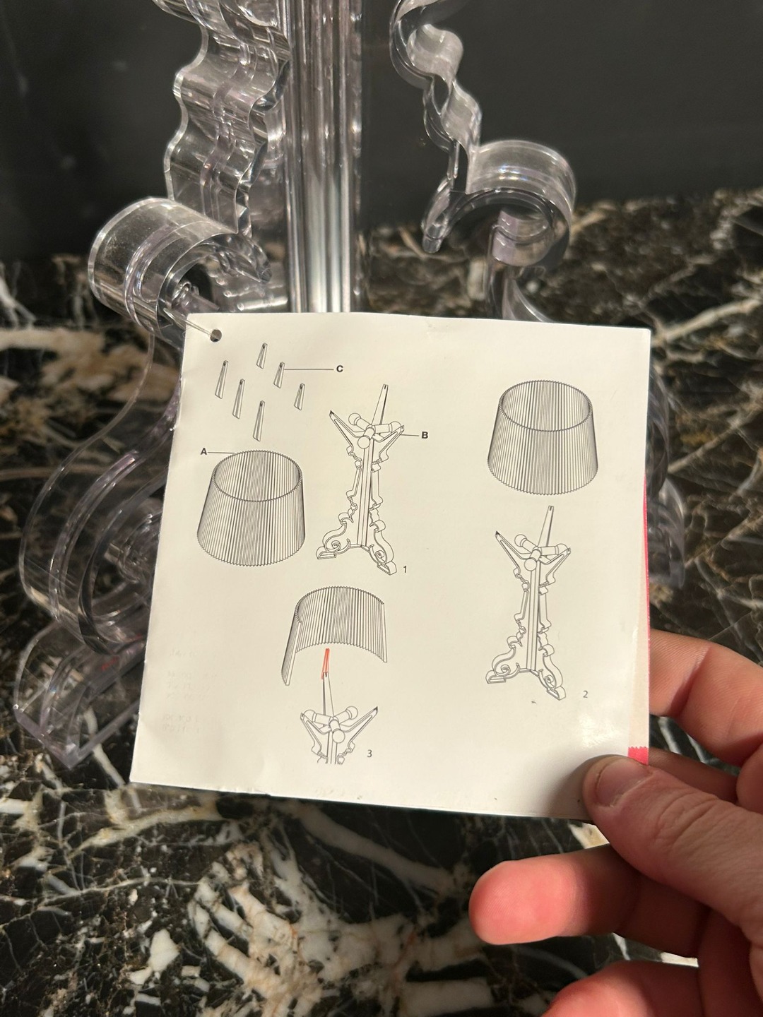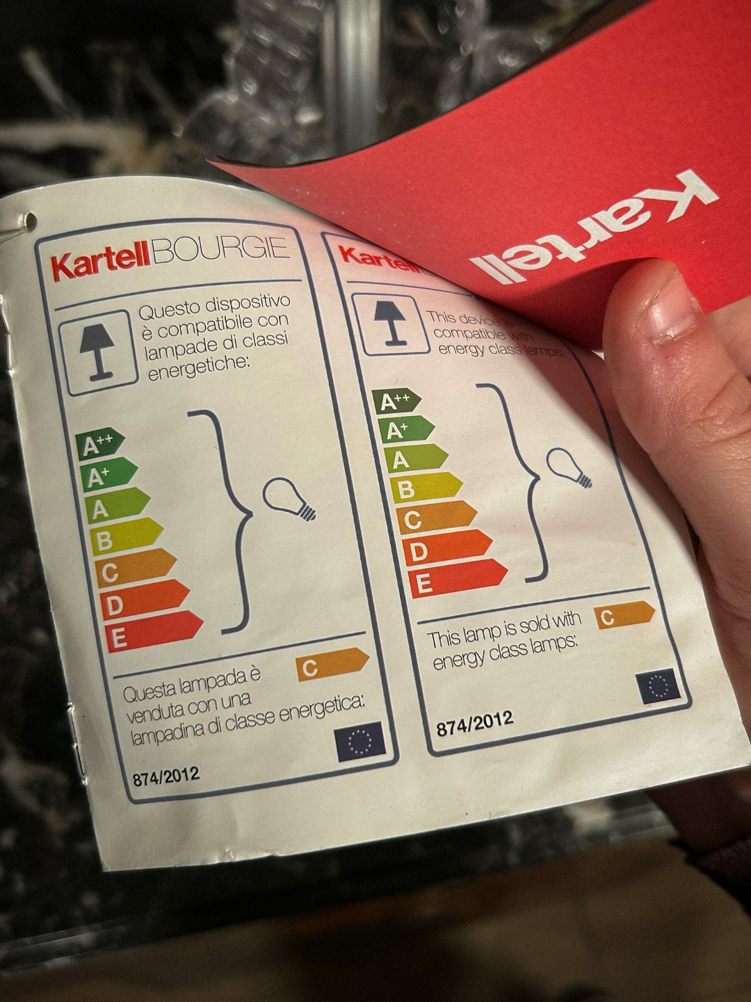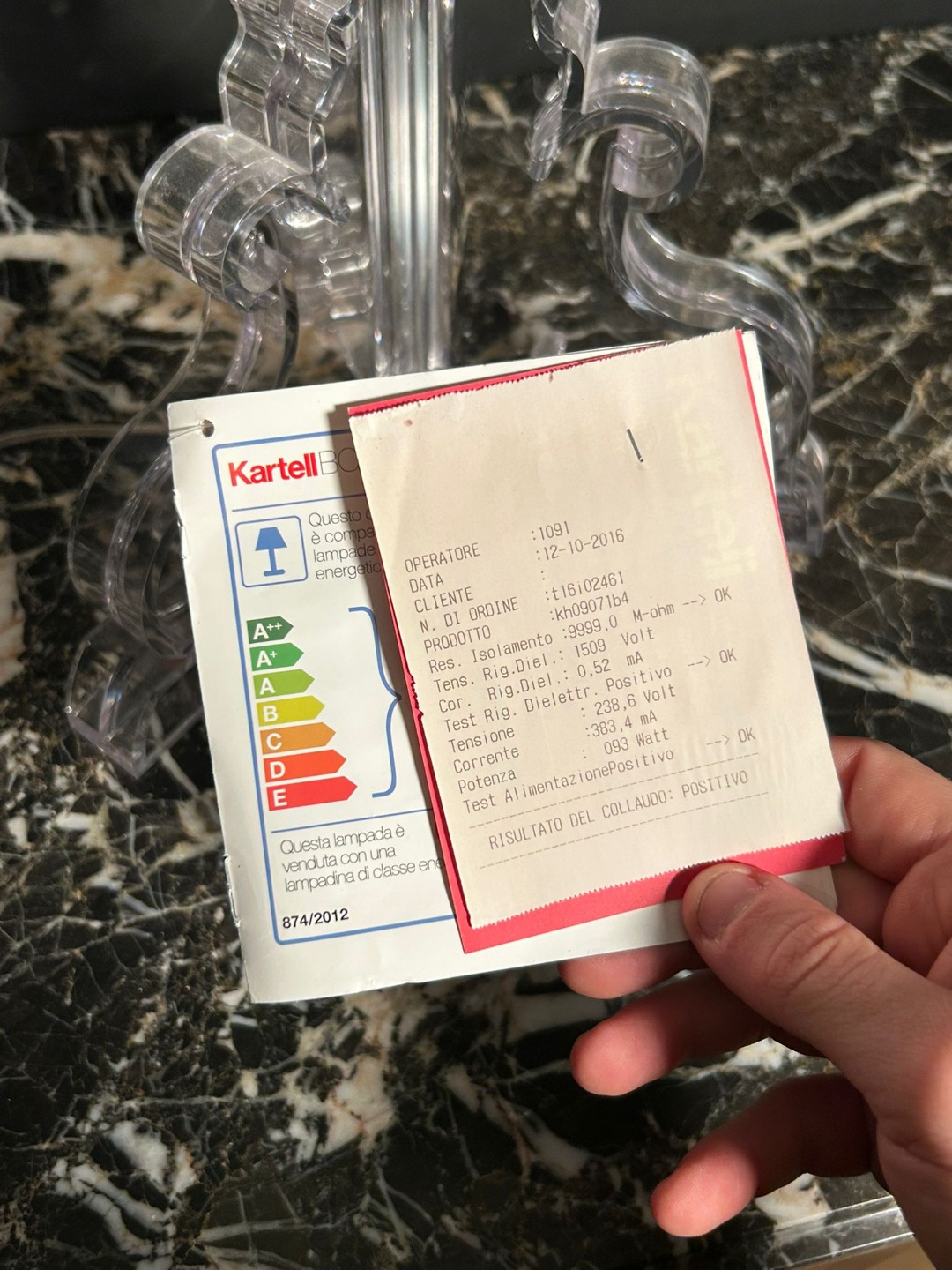 Il design, divenuto un classico del contemporaneo, unisce ricercatezza estetica e funzionalità, risultando perfetto per ambienti moderni, eclettici o classici rivisitati. La lampada monta tre punti luce interni ed è completa di marchio Kartell e librettino originale.