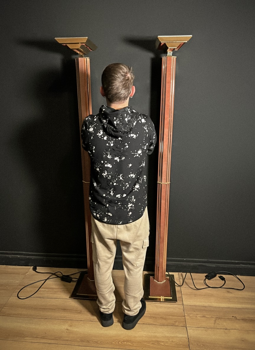 Le colonne slanciate e geometriche richiamano il gusto anni ’70–’80, con una forte impronta decorativa che rende queste piantane perfette per interni ricercati, hall, ambienti moderni o eclettici, oppure per scenografie di pregio.