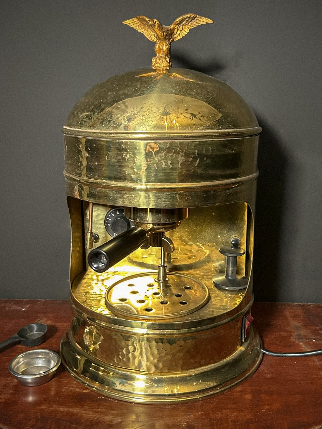 Una macchina da caffè dal grande fascino, perfetta sia come elemento decorativo sia come macchina funzionante dopo una revisione completa, ideale per collezionisti e per ambienti ricercati.