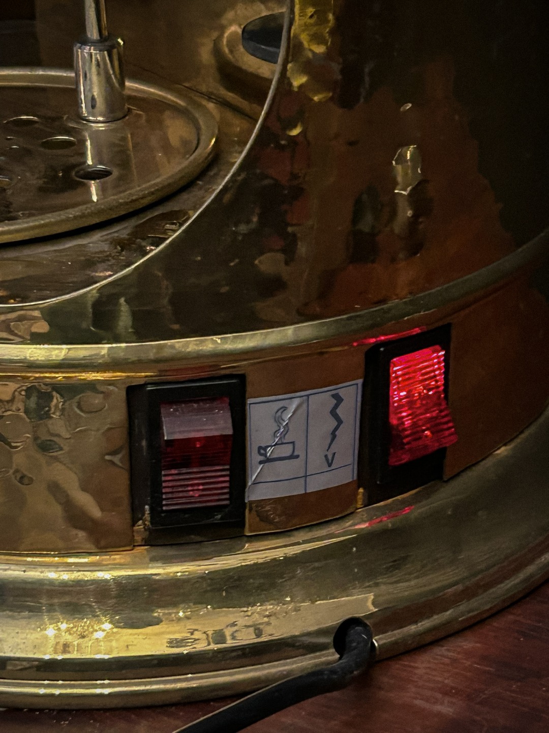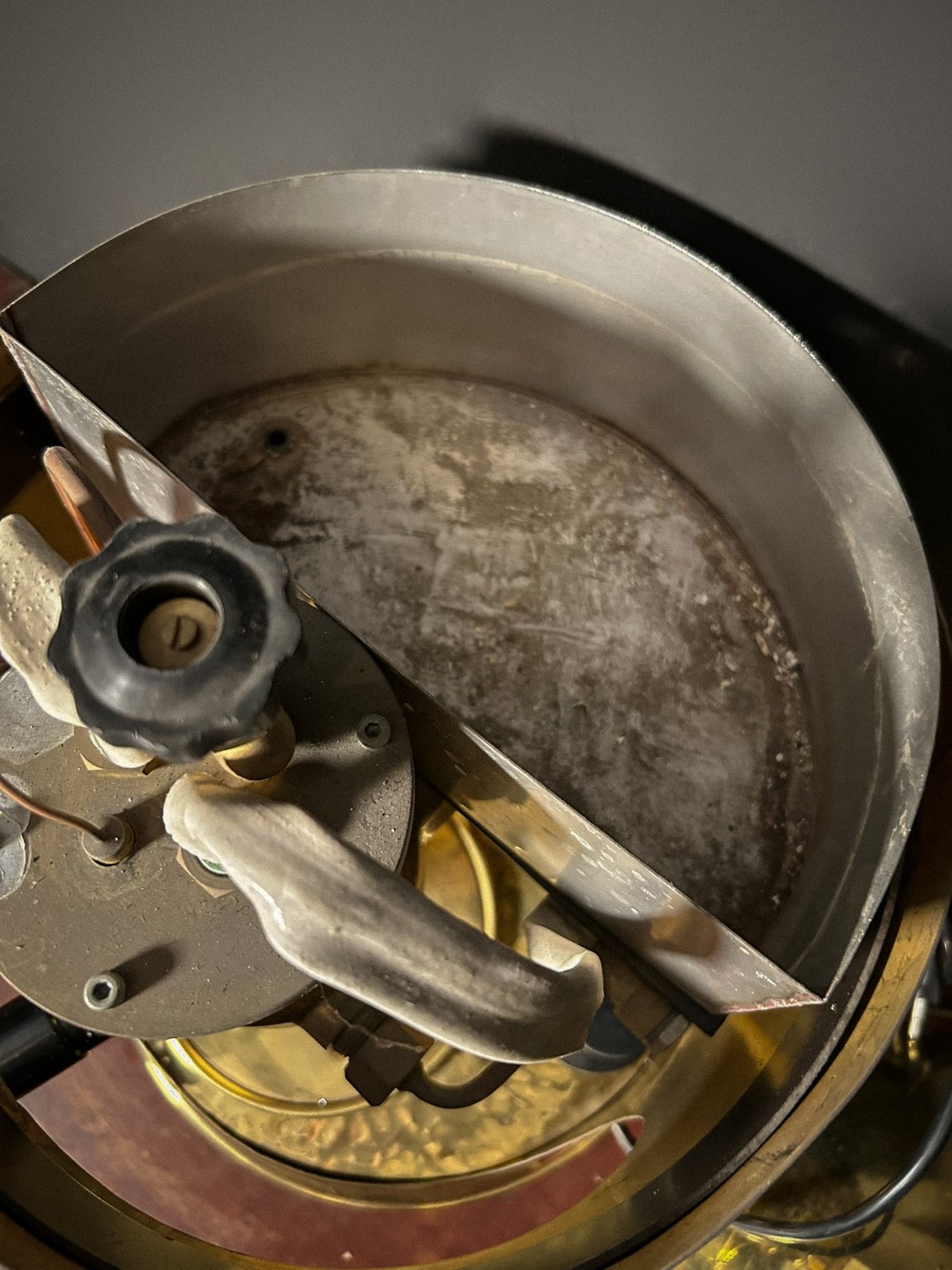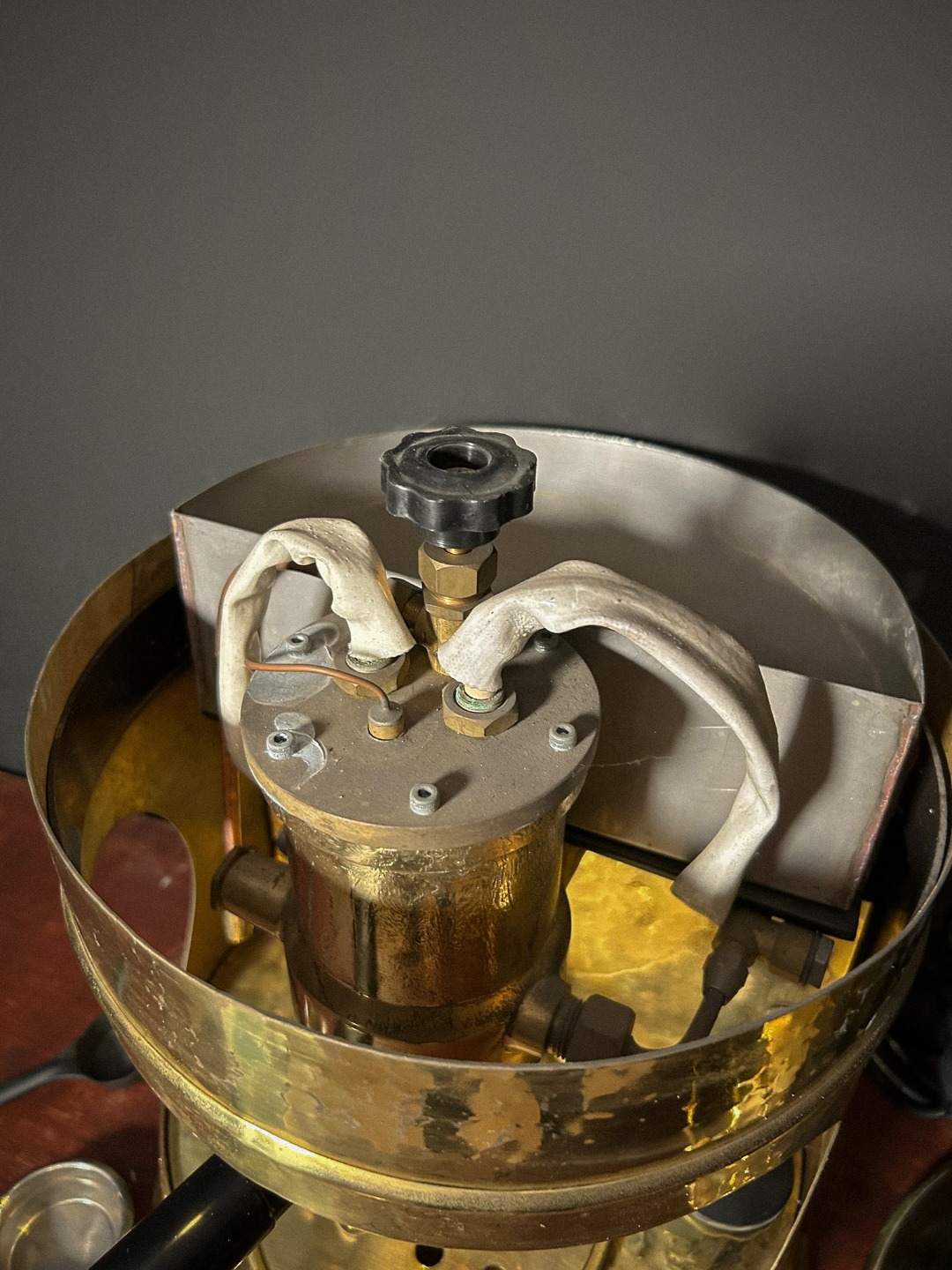 – Caldaia verticale in ottone, completa di raccordi originali.