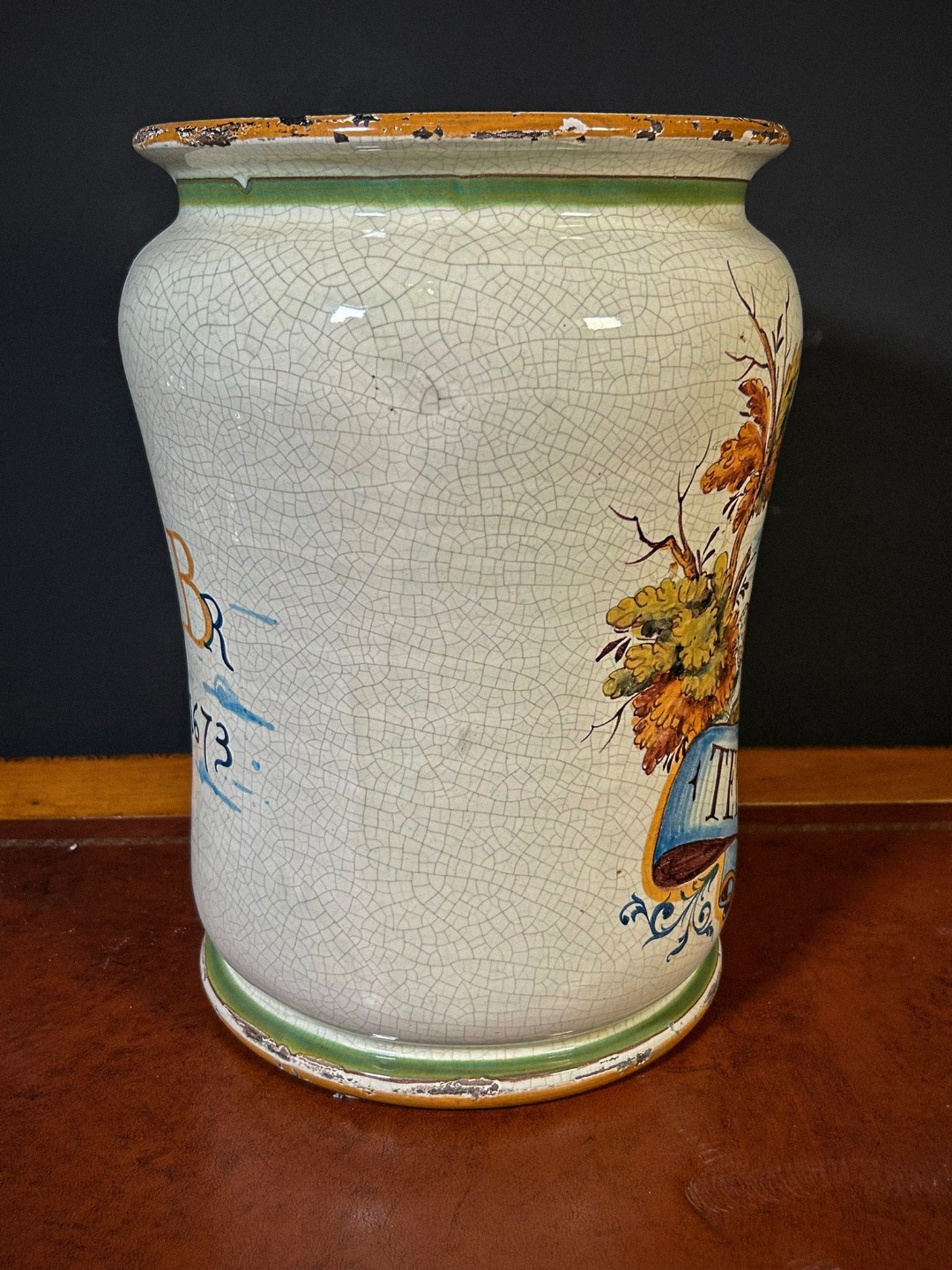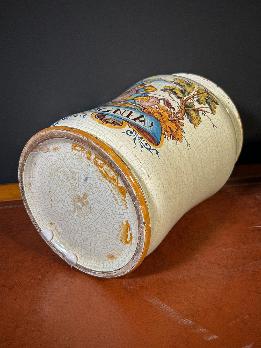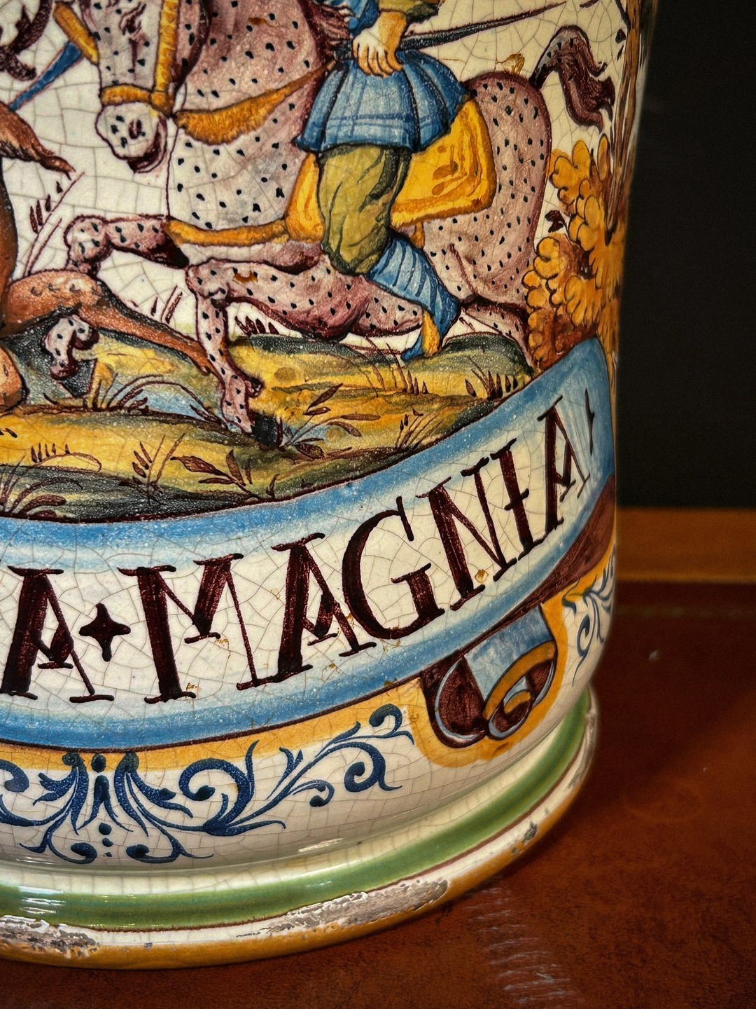 Un pezzo di grande impatto estetico, ideale per collezionisti di maiolica storica o come elemento decorativo di pregio in ambienti classici.